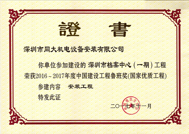 魯班獎(jiǎng)證...